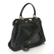This is an authentic FENDI Vitello Seta Lace Up Medium Peekaboo Iconic Satchel in Black. This stylish tote is crafted of calfskin leather in black and features a leather top handle, an optional shoulder strap, whipstitching, and button tabs on the sides. The structured frame across the top is secured by a gold turn lock on both sides. This opens to a suede and leather interior with a zipper pocket.