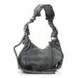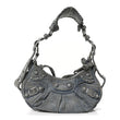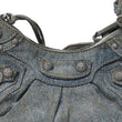 Washed Frayed Denim Crystal Le Cagole Shoulder Bag XS Blue