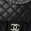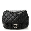 This is an authentic CHANEL Washed Lambskin Quilted Large Chain Around Messenger in Black. This shoulder bag is crafted of washed lambskin leather in black. It features a leather threaded polished silver chain around the body of the bag and shoulder strap, and a silver Chanel CC with a magnet closure. The flap opens to a gray fabric interior with zipper and patch pockets.