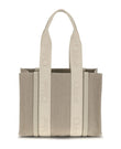 Elevate your everyday style with the Woody Medium Tote from Chloé. This sophisticated tote features a structured silhouette in a versatile neutral tone, complemented by signature branded canvas straps that add a touch of luxury to any ensemble.