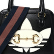 X adidas Textured Dollar Calfskin Web Trefoil Mini Horsebit 1955 Top Handle Bag Black off White