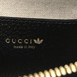 This is an authentic GUCCI X ADIDAS Textured Dollar Calfskin Web Mini Horsebit 1955 Top Handle Bag in Black and Off White. This chic bag is crafted of textured calfskin in black with an off white adidas logo. The bag features a horsebit detail at front, rolled leather top handles, an optional adjustable shoulder strap, an optional adjustable red and green web canvas strap and polished brass hardware. The top zipper opens to a beige fabric interior with a patch pocket.