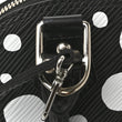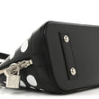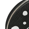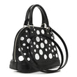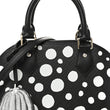 This is an authentic LOUIS VUITTON X YK Epi Alma BB in Black and White. This stunning bag features a graphic polka dot pattern from artist Yayoi Kusama printed in white on black Louis Vuitton epi leather. The bag features black leather trim, leather rolled top handles, an optional leather shoulder strap, a pumpkin shaped clochette for the keys to the lock, and silver hardware. The top zipper opens to a black fabric interior with a matching polka dot coated canvas patch pocket.