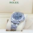 Unworn watch Rolex Yacht-Master 40, Oystersteel and platinum case, 40mm, ref# 126622-0001. Rolex Yacht-Master with a strong-looking profile, combines functionality and nautical style, looks confident on the wrist of a navigator or skipper. An excellent chronometer, it features a Slate dial with exceptional readability in all conditions, especially in the dark, thanks to the Chromalight display with a sophisticated matte finish and a date window at the 3 o'clock position. Recognizable branded hands show exact time. Hour hand made in the form the in Mercedes-logo with luminous fill. Minute hand has Breguet-style sword shape with luminous fill. Elegant light blue second with a skeletonized circle near the hand with a luminous fill and a blue circle as a counterweight. A well-readable minute scale is applied along the outer contour of the dial. The ribbed, easy-to-grip Triplock screw-down crown features a triple water-resistance system in Oystersteel with Rolex logo and built-in crown protection. The dial is covered with a scratch-resistant sapphire crystal with a Cyclops lens at the 3 o'clock position. The impressive bidirectional 60-minute graduated with raised numerals bezel crafted from platinum, giving the watch a silvery white and brilliant luster that creates an unmistakable sense of luxury. The bezel can be easily rotated thanks to its serrated edge for superior grip. The model is powered by the in-house automatic Rolex mechanical movement caliber 3235, contains 31 jewels and has an approximate power reserve of approximately 70 hours. This delicious watch is presented on an Oyster bracelet with three-piece solid links of Oystersteel. It is fitted with Folding Oysterlock safety clasp with Easylink 5 mm comfort extension link. Water resistant up to 100m/330ft (10 ATM).