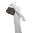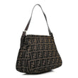 This is an authentic FENDI Zucca Mama Baguette in Tobacco. This classic Baguette is crafted of FF Zucca canvas in brown. It features an overhanging flap, an adjustable brown leather shoulder strap, and a prominent polished silver Fendi FF closure snap. This opens to a brown fabric interior with a zipper pocket.