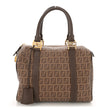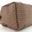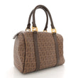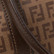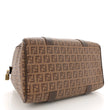 This is an authentic FENDI Zucchino Spalmati Vitello Boston in Nocciola and Castagna. This stylish tote is finely crafted of traditional Fendi coated canvas in brown. The tote features brown leather rolled top handles and trim with polished gold hardware. The top zipper opens to a fabric interior with a flat pocket.